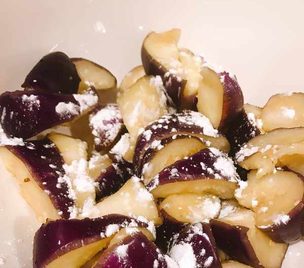 炒茄子時,調味時不要直接撒鹽,應該提前調好料汁,用料汁調味更均勻、更入味。因為料汁中加瞭淀粉,能很好地包裹在茄子表面。