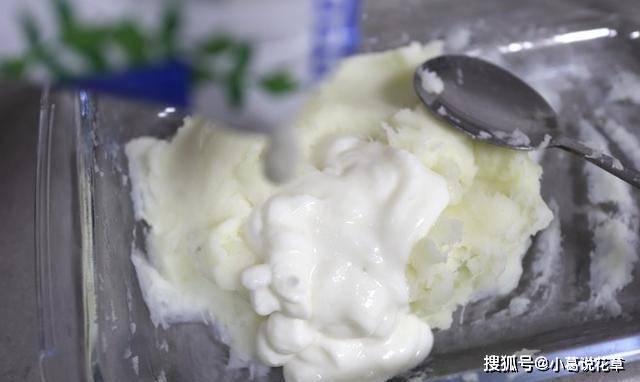 4.一步一步加入酸奶;為什麼要一步步添加呢?由於無法預測山藥泥的稠度,因此不同酸奶品牌的稠度也各不相同;