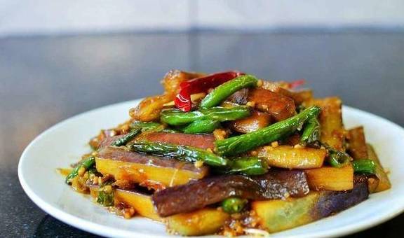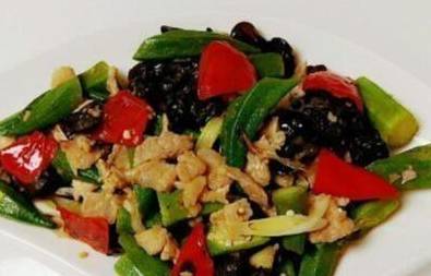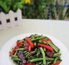 5.把豇豆下鍋煸炒