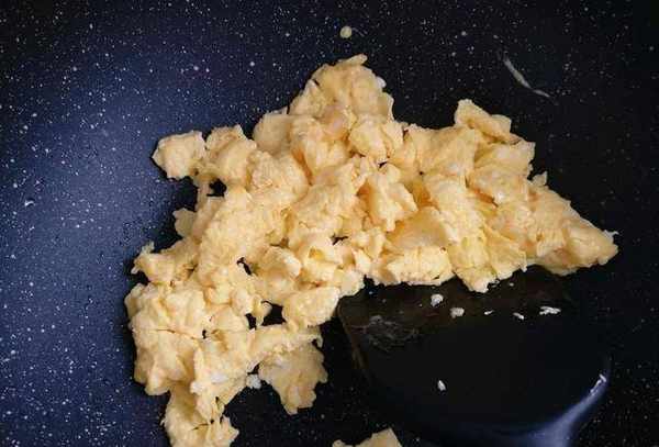 3、打入2個雞蛋打入碗中,用筷子將雞蛋打散,拌勻。在鍋中倒入適量的食用油。油熱後,將打好的蛋液倒入鍋中。等到蛋液邊緣凝固。