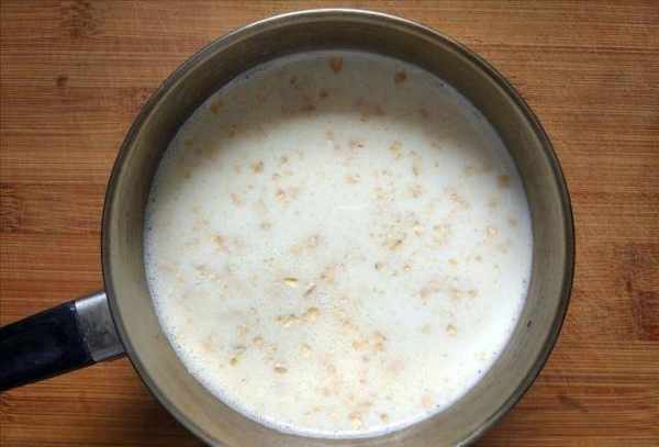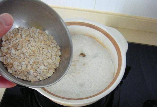 準備一個小湯鍋,將湯鍋內部清洗幹凈,然後倒入牛奶,小火慢慢加熱。當牛奶沸騰時,將燕麥片撒入其中並在烹飪過程中混合均勻。將燕麥片混合均勻,煮約3-5分鐘。期間要用小火,不要用大火,否則牛奶會凝結。