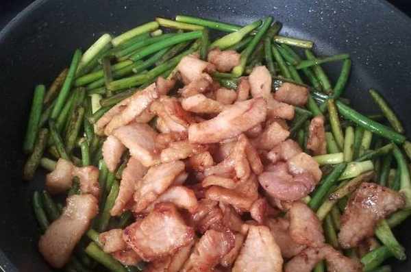 和臘肉、臘腸一起炒時,如果臘肉、臘腸本來就很咸,就不要再加鹽瞭,可以加一些白糖,能中和咸味,而且能提鮮,吃起來味道鮮美。另外,臘肉、臘腸要煸出多餘的油脂,讓蒜苔吸收,口感會更好,也不油膩。