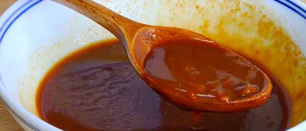 4.兩勺黃豆醬倒入一個空碗中,再放入2勺甜面醬,然後再加入半碗清水將這些醬料給它卸開,直接用勺子攪勻攪成稀稠狀就可以啦。