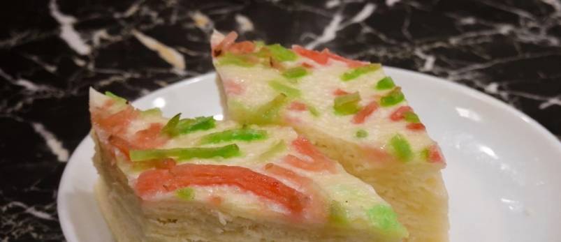 千層油糕是傳統小吃,江浙皖一帶都喜歡吃這一類,通體半透明,層層相疊,切成菱形小塊,整齊地碼放在蒸籠中,非常柔韌,我喜歡一層一層撕下來吃,透著淡淡的甜味。
