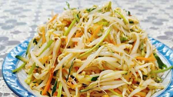 綠豆芽,人人愛,可以做湯可以可以做菜,在綠豆芽中含有大量的水分,維生素C,當然也富含鉀等微量元素,夏季流汗多,常吃些也很不錯。夏天一定少不瞭涼菜,所以今天跟大傢分享一個涼拌豆芽的吃法,爽口開胃,一盤上桌不夠吃。