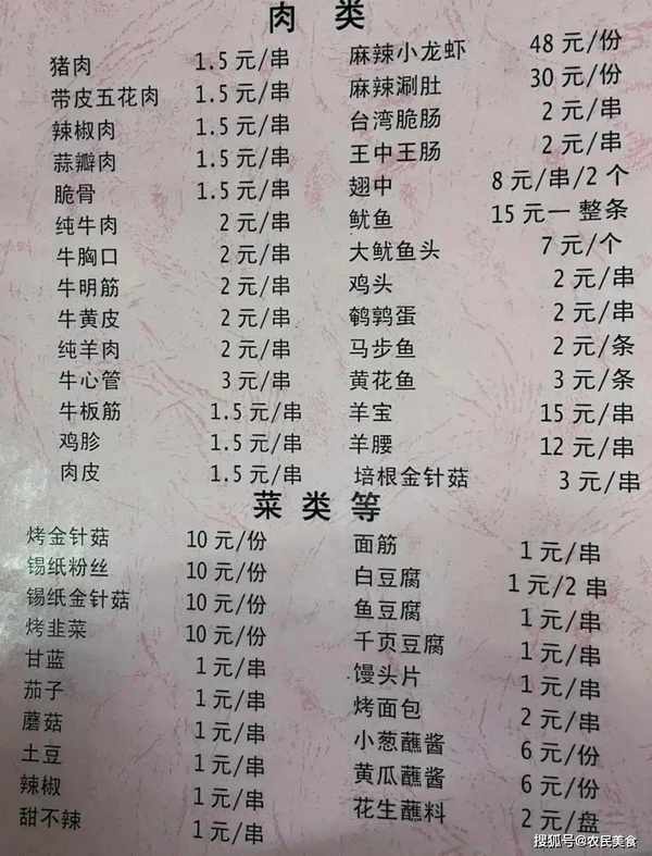 常海一傢找瞭一個小桌子坐下,拿起服務員送上來的菜單開始點菜,這個菜單讓就讓常海比較開眼,因為他看到旁邊桌上的肉串都比較大,但是這菜單上的肉串價格卻很便宜,同是2元一串的羊肉串,但是淄博的肉串明顯要比西安的大上一圈,四個人點瞭一堆串,還有淄博燒烤的靈魂小餅,這小餅都是論打出售的,一袋裡面能有五六張,四個人點瞭兩份小餅。