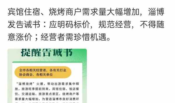 近日,山東淄博燒烤網上爆紅,吸引大量遊客慕名前往。當地領導表示,今年五一清華、北大在校生到淄博玩,景區和指定酒店住宿全程免費,引發眾多網友關註。明碼標價,規范經營