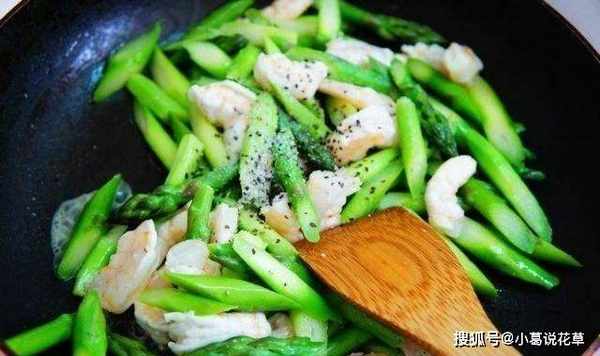 鍋中加入適量食用油,然後放入醃制好的大蝦炒至熟。然後加入準備好的蘆筍,一邊不停地翻炒。炒的時候可以加入切碎的蒜片翻炒出香味。出鍋前撒上適量的鹽、生抽和黑胡椒,炒勻後即可食用。