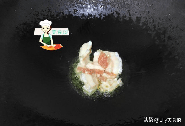3、熱鍋涼油,先下入五花肉煸炒出油脂。