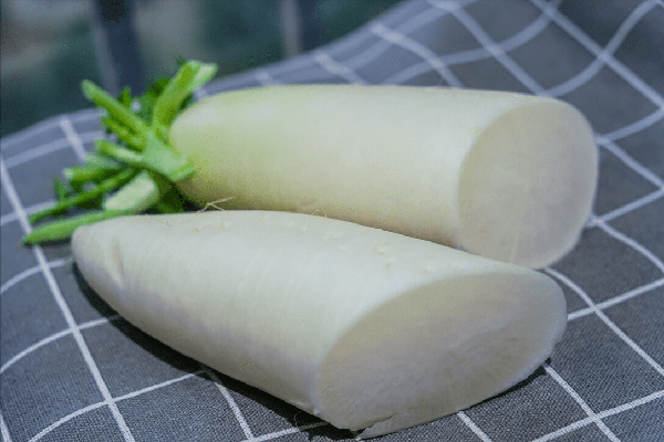 1、準備一根大白蘿卜,清洗幹凈之後,最好把皮去瞭,然後切成片狀。切片的時候,可以直接切薄片,也可以切滾刀片,根據自己喜好來。