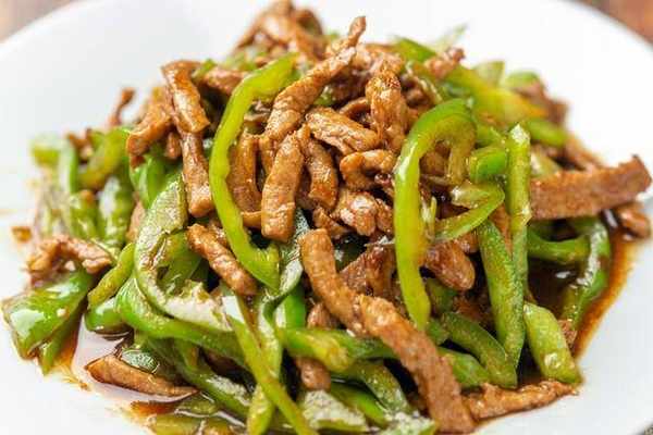 配料:瘦肉絲、青椒、薑、蒜、醬油、鹽、料酒、淀粉、油