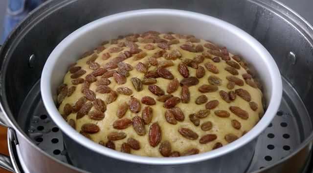 5、 發酵好之後,放上葡萄幹,上鍋蒸30分鐘即可。