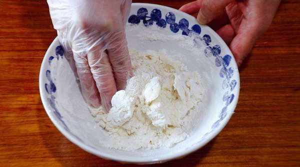 3、 等到揉成沒有幹面粉的狀態,放入一些豬油,將豬油揉到面團裡面;