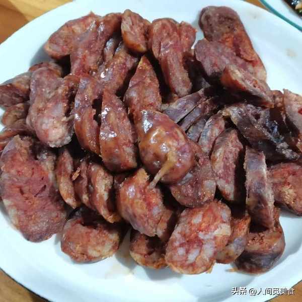 自己做的香腸也很美味,肥瘦相間還有點微微的辣,蒸熟之後還多汁,味道特別香醇。
