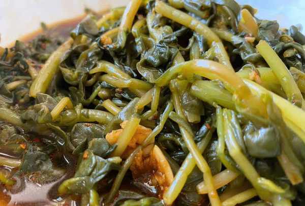 1、首先,我們將選好的鱷魚身上的泥土、老葉和根莖清洗幹凈。用清水清洗炸丸子數次。切片後切段備用。