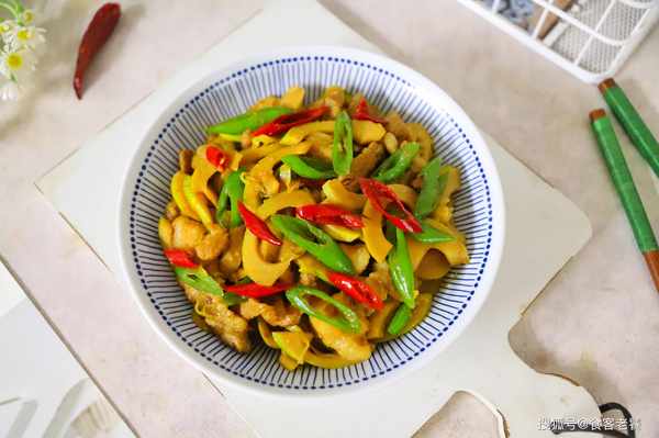 【做法】:1、春筍剝去筍殼,清洗幹凈後切成薄片,放開水中焯水後撈出瀝幹水分,五花肉清洗幹凈後切成薄片,青、紅椒洗凈斜切成段。