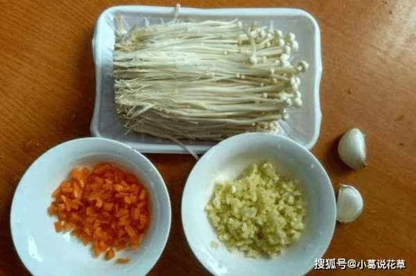 第四步:將蒜茸和胡蘿卜丁爆香後,加入適量醬油和雞精調味,金針菇更入味。蒜蓉醬煮熟後,澆在金針菇上,然後將金針菇放入蒸鍋中蒸約半小時。10分鐘。時間一到,就差不多可以出鍋瞭。出鍋時撒上適量的蔥花和香菜。味道更好!