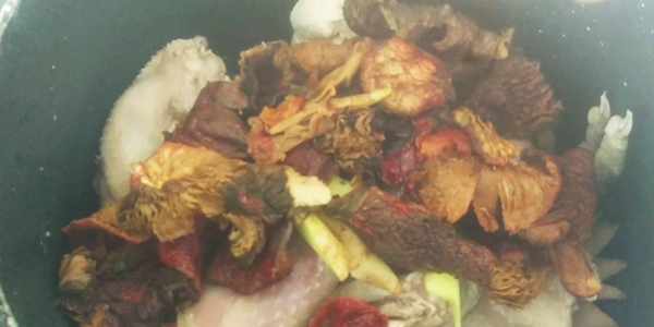 雞肉半隻,幹紅菇50克,薑1塊。