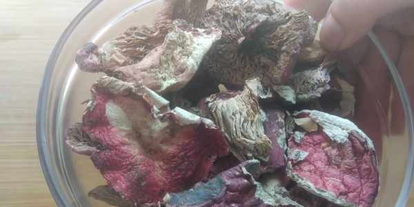 第三部:準備一碗紅菇,差不多100克左右,把幹紅菇的頭剪掉。我這買的幹紅菇品質比較差的,但是不影響食用哈!