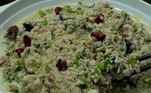 你來到河池,去到宜州後,無論是你走到哪個鄉或者哪個村,特別是在遠離市區的峒場人傢作客,熱情好客的山裡壯傢人對吼準備酒和粥開款待你。在豐盛的菜肴中,你會發現有一隻很大的碗裡面裝著糊糊,這就是當地人所稱為的豆腐瑤。由於漢、壯語言的語序有別,城裡人稱為“瑤豆腐”,即是“瑤傢人的豆腐”。