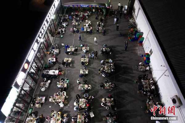 山東淄博一傢燒烤店內座無虛席,食客排隊享用美食。中新社記者 梁犇 攝
