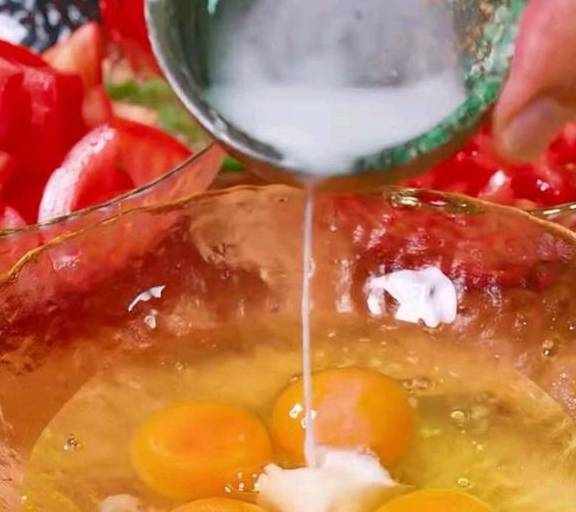 【原材料】番茄兩個、雞蛋4個、食鹽12克、雞精8克、生粉8克、白糖12克。