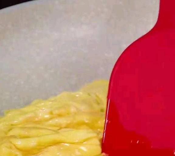 3、熱鍋,放入少許熱油,油溫4成熱,把雞蛋倒入鍋中用小火慢炒,等待雞蛋底層雞蛋液凝固,然後用鏟子慢慢鏟動,不要把雞蛋弄碎直到最後雞蛋液完全凝固即可。