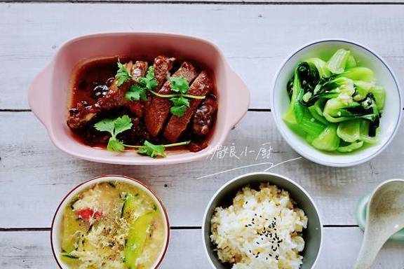 醬鴨腿|清炒油菜|黃瓜蛋湯