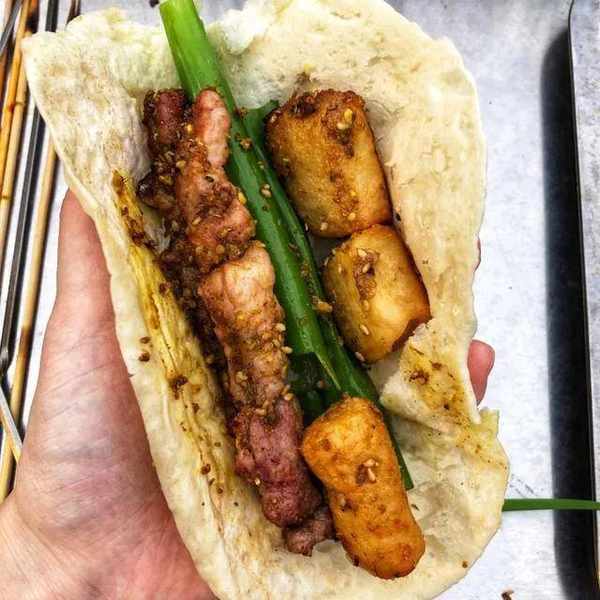 表妹還想知道那些小餅和小蔥是幹嘛用的?為啥小蔥都不切成蔥花?平常吃烤串,撒點蔥花和蒜蓉那些配料,味道會更香。她觀察瞭隔壁桌,發現:原來這小餅需要放在烤爐上烤熟,然後卷上烤熟的肉菜,再加幾根蔥,卷起來像漢堡那樣吃的。表妹模仿隔壁桌的人把烤肉和小蔥卷在小餅裡,嘗瞭一口,“咦,整口都感覺像是吃餅皮,都沒肉的感覺,而且生蔥特別辣,實在吃不慣。”這種吃法,可能對於我們南方人來說真的不適合,我們都不愛吃面食的人,卷個餅真的吃不習慣,還是大口大口吃肉那種感覺比較痛快!還有那生蔥,有一種很刺激的味道,壓根就吃不習慣。