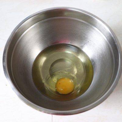 2.將玉米油倒入碗中,打入雞蛋,攪拌均勻