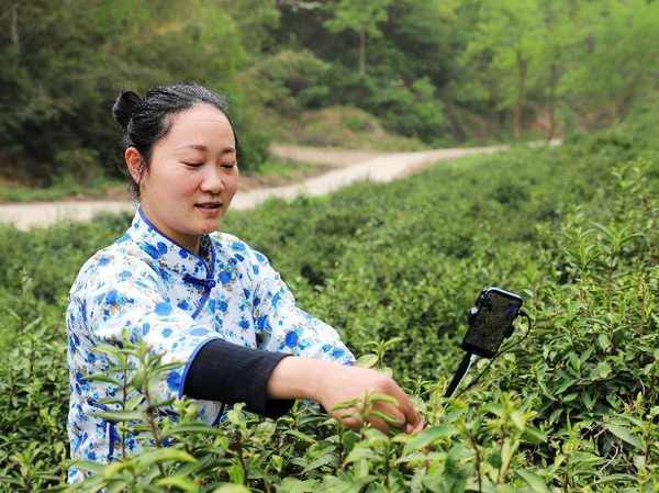 “各位粉絲好!歡迎大傢跟著我一起欣賞茶園風景,瞭解信陽毛尖制茶工藝,感受茶文化魅力......”4月18日,在信陽市平橋區震雷山的山間茶園裡,盧青在茶樹間穿梭,熟練地采摘茶尖;同時手持自拍桿,通過網絡直播向全國各地的茶友們打招呼。半個多月來,她的直播間已經擁有3千多名粉絲,以生態茶園為背景的直播畫面一經推出,就收獲瞭網友的關註和不少訂單。