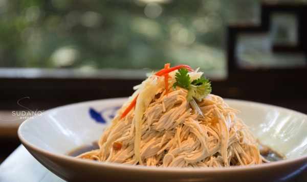 "揚州好,茶社客堪邀。加料千絲堆細縷,熟銅烟袋臥長苗,燒酒水晶肴。"清代惺庵居士寫的這首《望江南》,極為生動地描繪了清代揚州人品嘗"加料幹絲"的情景。揚州幹絲分"燙幹絲"和"大煮幹絲",看起來清淡,聞起來清香,吃起來清爽。