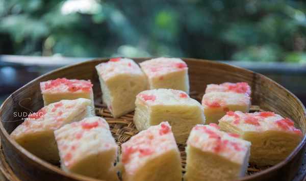 當然了,揚州的千層油糕也不可不嘗。古樸的蒸籠裏所蒸出來的千層糕,不僅柔軟細膩,而且香甜。其造型呈菱形方塊,芙蓉色,半透明,層層糖油相間,糕面布以紅綠絲,觀之清新悅目,食之綿軟嫩甜。