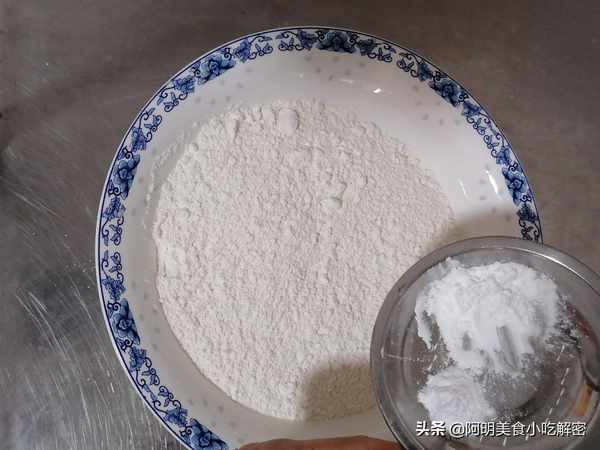 1、 200克低筋面粉、150克玉米淀粉、2克小蘇打、4克發酵粉,攪拌均勻