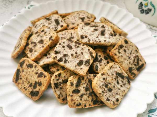 主要原料:180克低筋面粉、80克黃油、30克糖、40克純牛奶、60克奧利奧餅幹