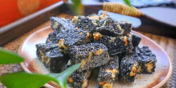 我們的"芝麻核桃糖"就做好了,核桃和芝麻都是非常受大家喜愛的食物,今天教大家做的這個糖果,巧妙地將這兩種食材相結合,再利用麥芽糖和白糖做出的糖漿,成型後切成小塊包起來,放在罐子裏可以吃很久,味道甘甜不膩口,不僅適合小朋友食用,拿來當下午茶吃也是不錯的選擇。