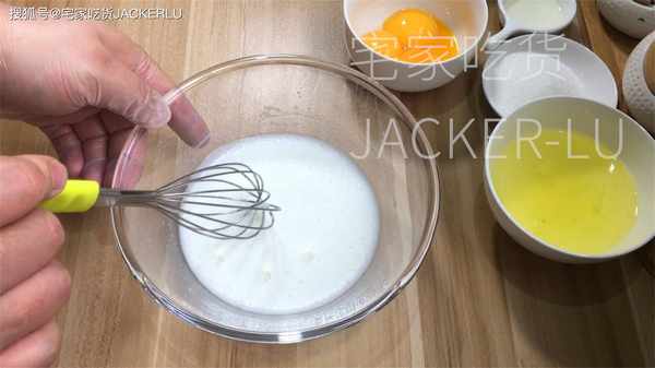 5、蛋清3個、檸檬汁6克,先打發出大的魚眼泡。