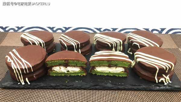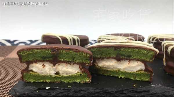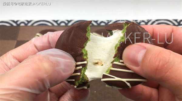 今天做一款美味小甜點,抹茶棉花糖夾心派,絲滑巧克力外殼和柔軟棉花糖夾心交織在一起。