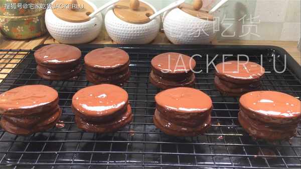 15、把準備好的夾心蛋糕,放進去沾滿巧克力,然後冷藏讓外殼硬化。