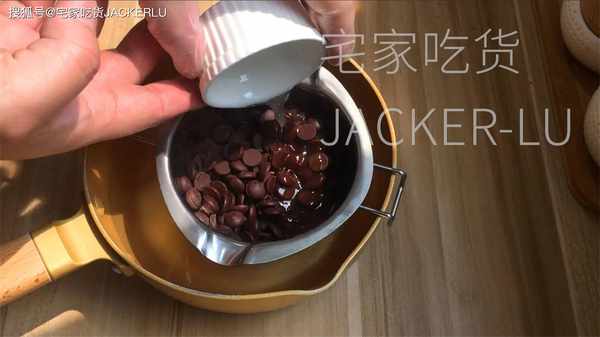 14、把黑巧克力150克、椰子油20克,隔熱融化。