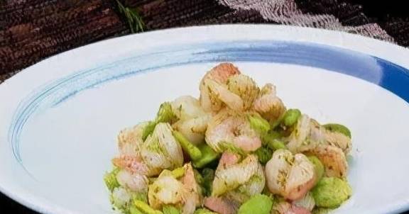 1.將蝦肉洗幹凈後放入料酒,鹽,胡椒粉,雞蛋清,淀粉漿。鮮蠶豆下鍋煮熟後用冷水過涼。
