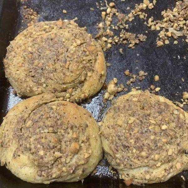 05.餅面再抹適量核桃花生油酥,依次做好所有麵團,放入烤盤中。