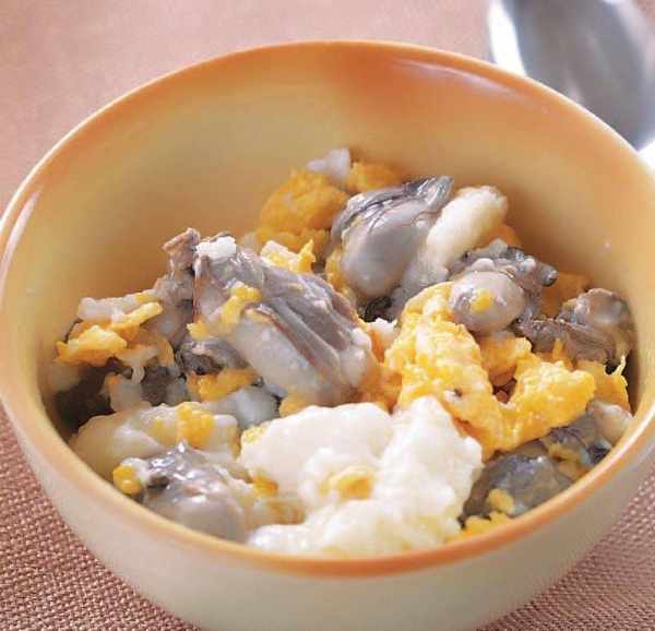 3 再放入年糕、牡蠣肉煮約 15 分鐘,加入精鹽、味精調味,淋入香油即可。