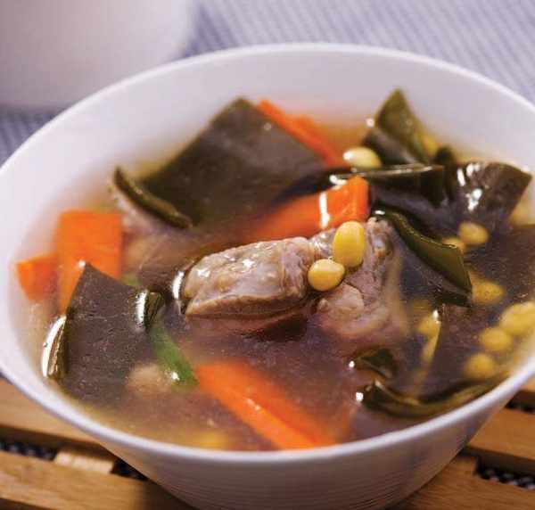 原料 排骨 200 克,海帶 100 克,泡好的黃豆 50 克,胡蘿卜 150 克。