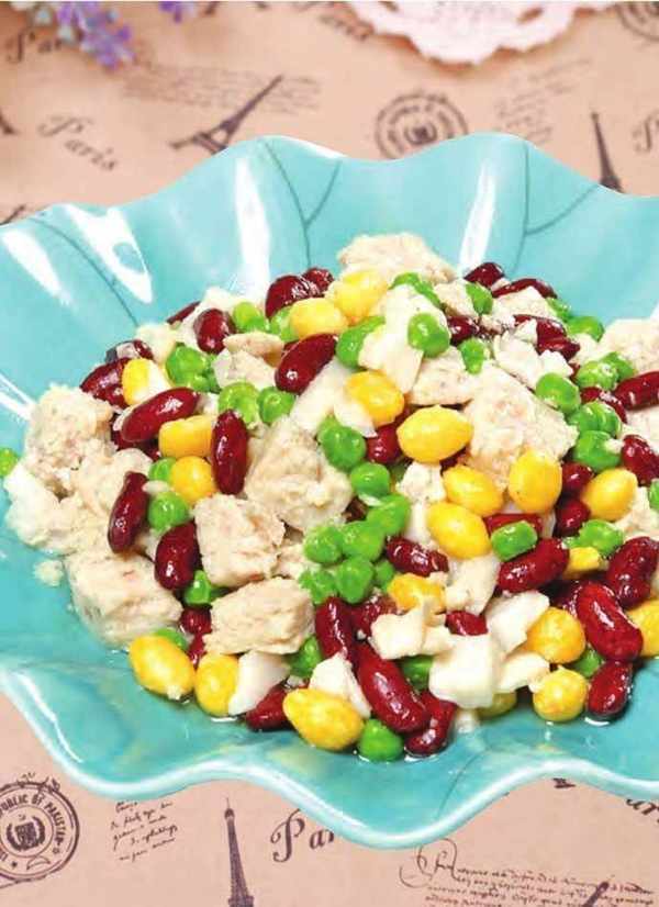 紅腰豆、白果各 200 克,魚肉、豌豆各 300 克