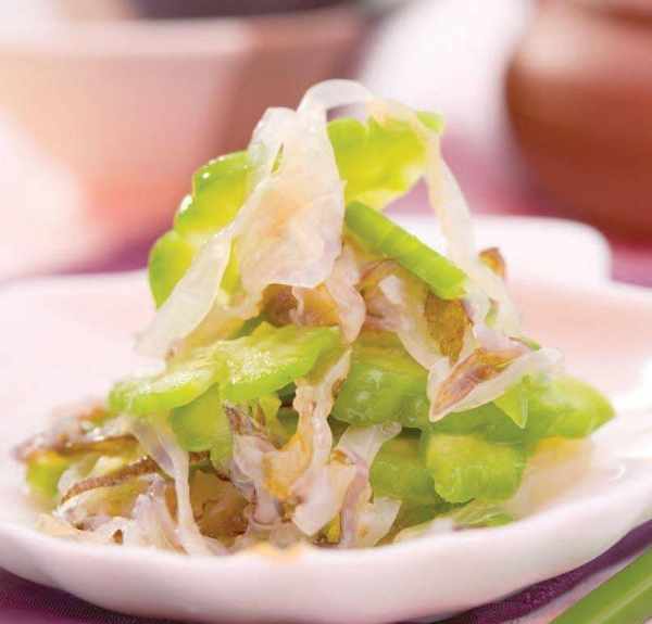 原料 海蜇頭 200 克,苦瓜 100 克。