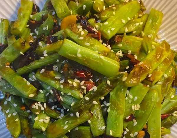 這款幹煸豆角不僅顏值高,而且香氣四溢,口感極佳。豆角經過“幹煸”後,表面金黃酥脆,內裡還帶著自然的甜味,配上咸甜適中的調味醬汁,入口香脆、多汁,回味無窮,讓人欲罷不能。