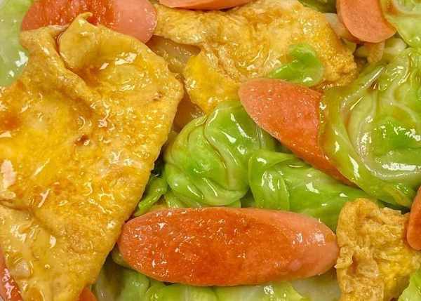 準備食材:包菜,雞蛋,火腿,蒜末。