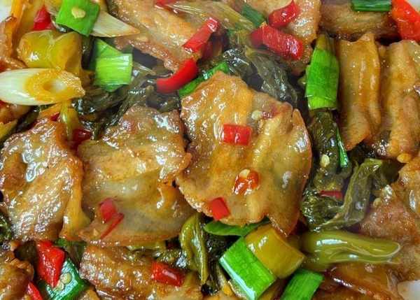 準備食材:五花肉,酸菜,小米辣,蒜片,薑絲。