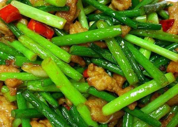 準備食材:蒜苔,肉絲,小米辣,蒜末。